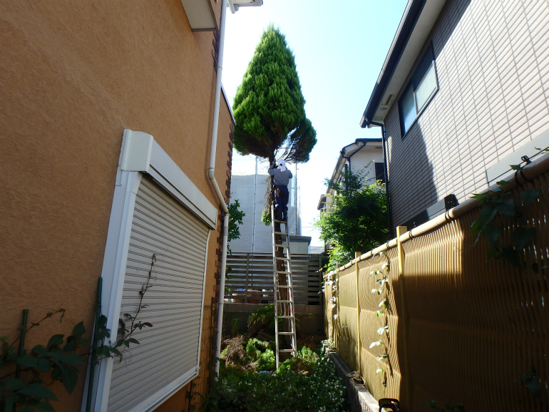 【 施工内容 】 コニファー「ゴールドクレスト」伐採