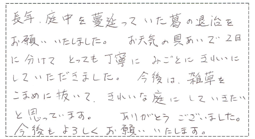 こちらの希望通りに、庭を綺麗にして下さり、本当にありがとうございます。