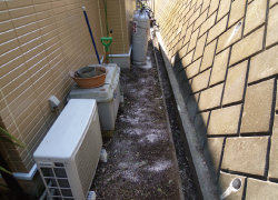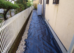 張る前に、下地を綺麗にしてから張る、こうする事で、防草シートの役割を果たしてくれます。