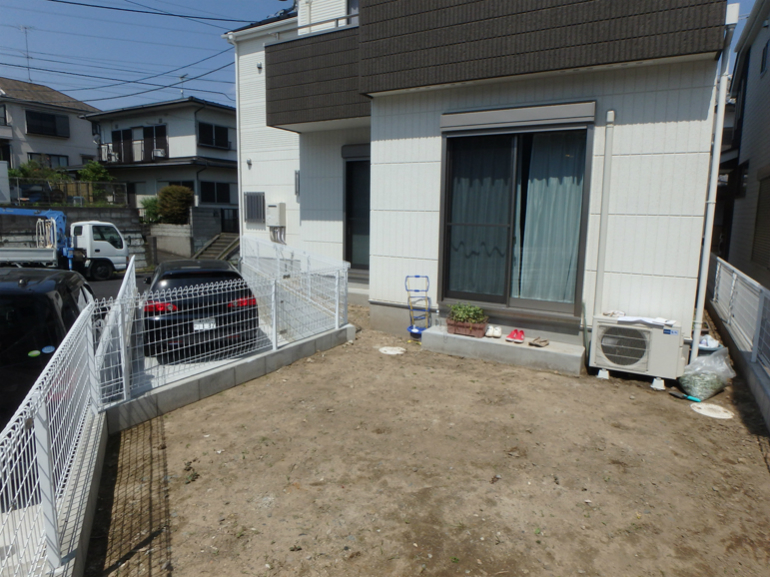 お庭の状態は、何もない状態でした。これから生えてくるであろう、雑草に早めに対応するために、防草シート張りのご依頼を頂戴しました。