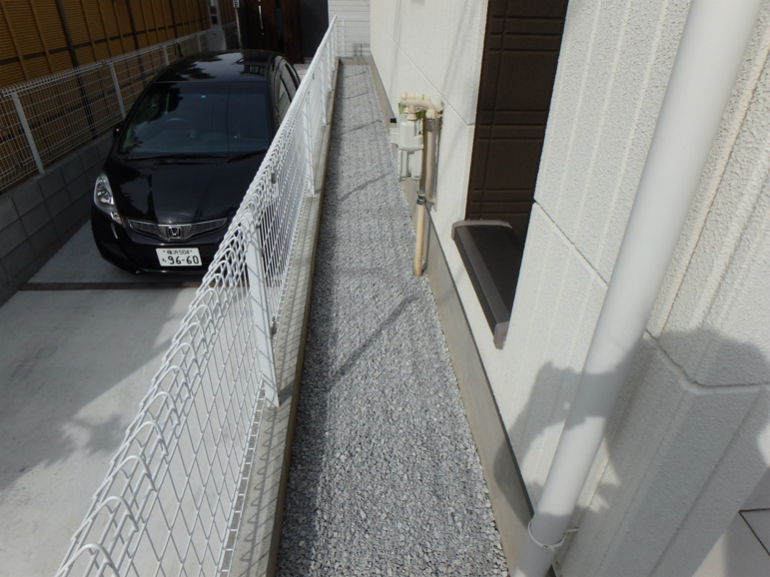 新築を購入して、すぐに防草シートを張り砂利敷きする事で、雑草を半永久的に無くす事ができますね。