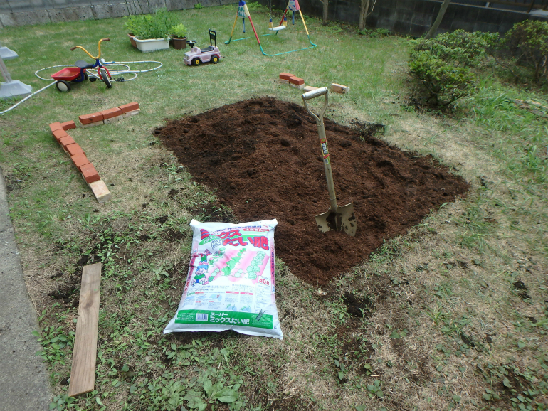 今度は、家庭菜園をするスペースを造らせていただきました。