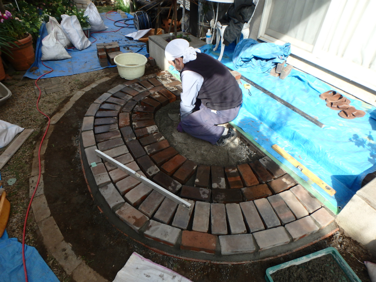 1、自分で並べたレンガを、セメントで固定して欲しい