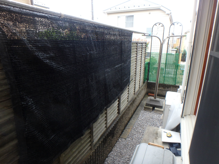 今まで取り付けてあったフェンスよりも、20p程高くして、部屋の中からみても外からの視線が気にならなくなります。