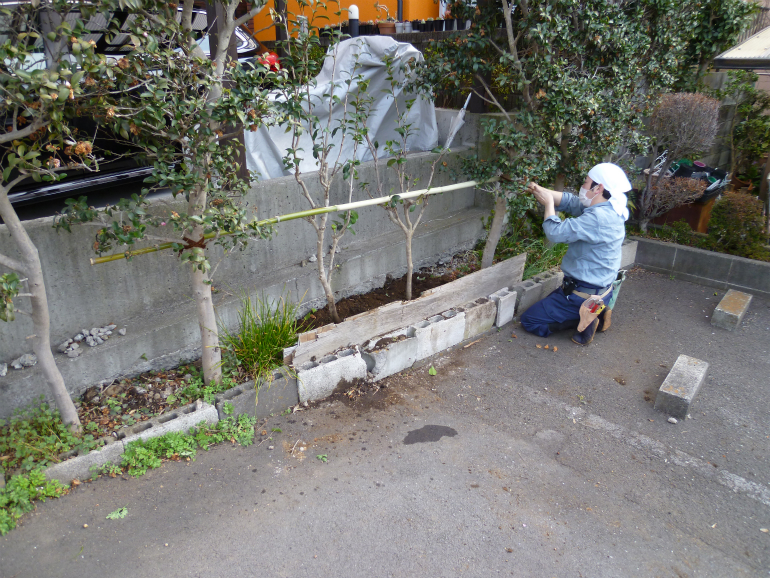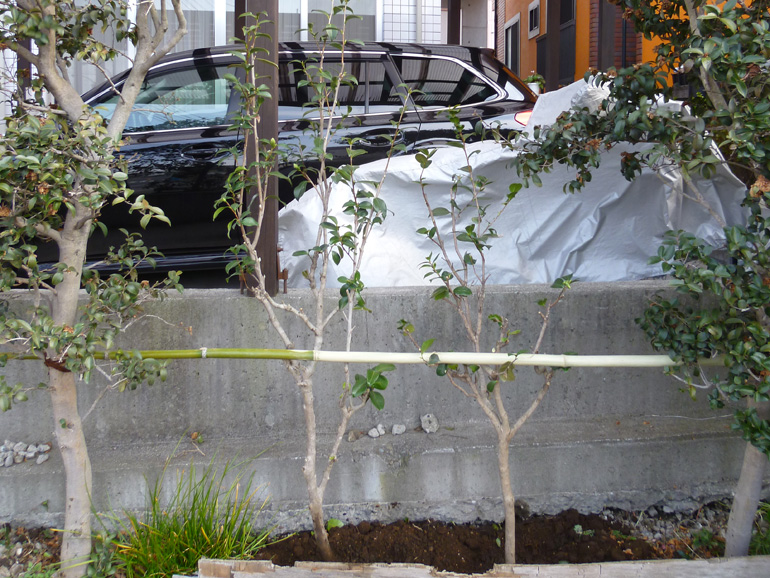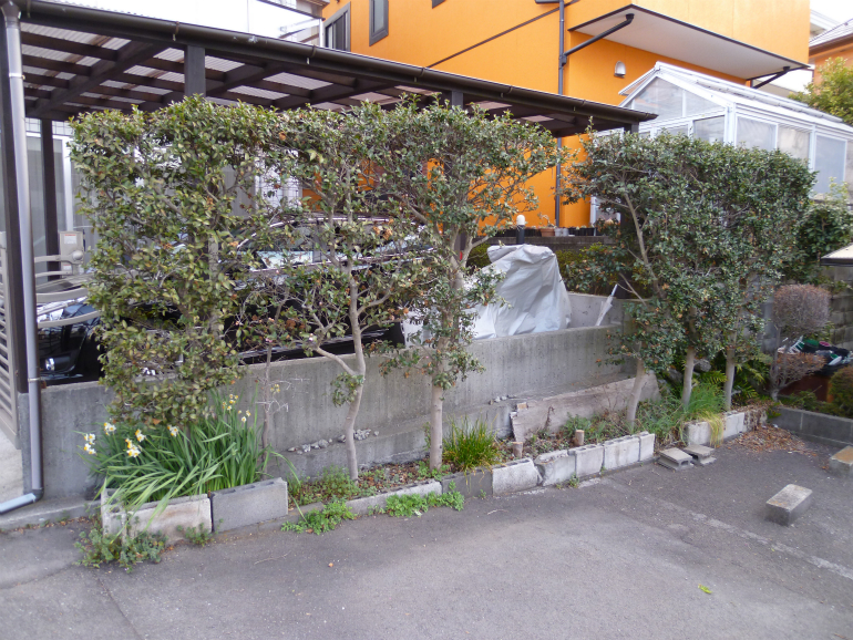 2、空いたスペースには、庭の中にあるツバキを移植して、垣根が復活するようにして欲しい