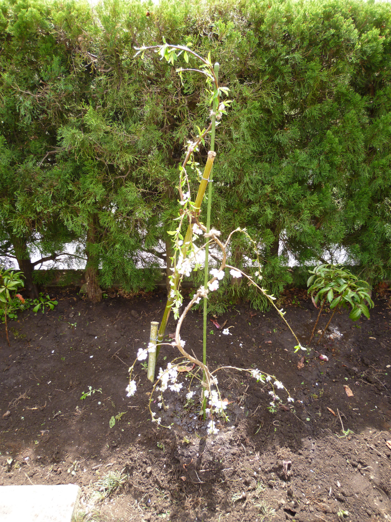 交換した植木は、源平枝垂れモモです。花が、2色3色に咲き分け、とても綺麗に咲いてくれます。枝垂れの植木が庭内になかったので、その雰囲気も相まって、お庭全体が良くなりましたね。