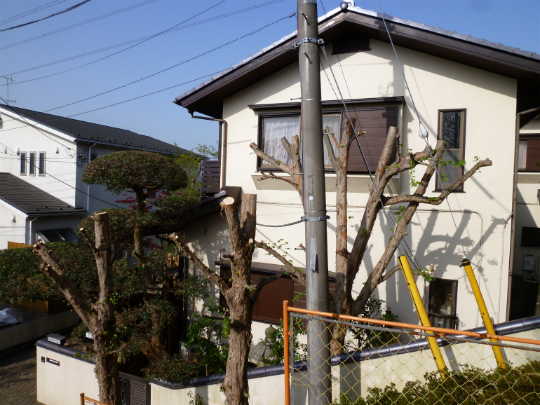 また、お嬢様にお子さんが生まれ、洗濯物を干したりする際に、ケムシが怖いので、虫が付きそうな植木は、風通しを良くして、虫が付かないように仕立てました。伸び放題だった竹も、全て地面ギリギリで伐採しました。