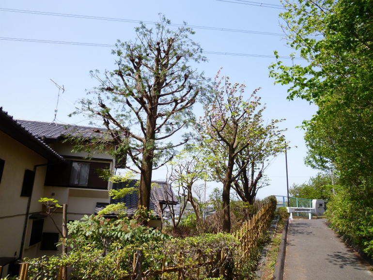 2、落ち葉、樹液がひどいので、駐車場の上の枝を、無くしたい