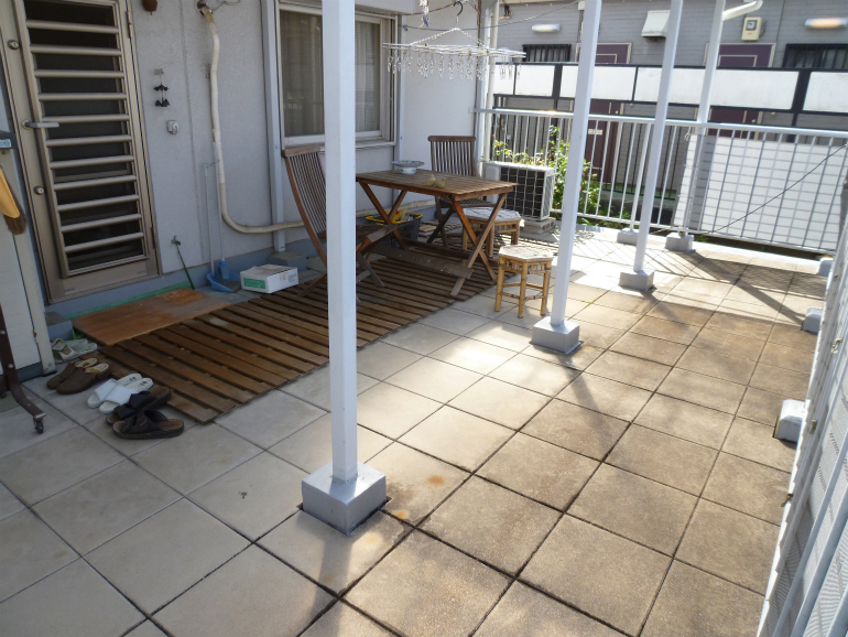 1、洗濯物を干しているコンクリートのバルコニーを、ウッドデッキに変更したい