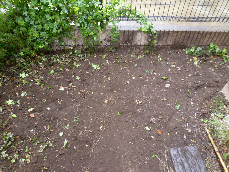 根っこは、かなり大きく太く、力強かったので、ミニショベルカーを使用しての抜根作業となりました。問題なく根っこも撤去し、併せて、大きくなりすぎたシマトネリコの剪定と、草取りを行い、完了です!