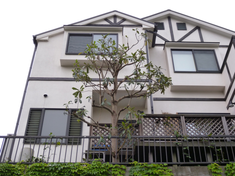 ところが、デッキに面して植えてあるビワは、建物の2階の窓部分まで大きくなっており、風が吹けば、建物に枝がぶつかってしまう程、成長しすぎていました。