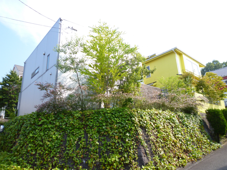 建物をご覧になるとわかるように、お洒落で素敵な概観、建築家の方が設計したそうで、植木もお打ちを建てた時に植えつけて、そのままの状態で、最近まで過ごされていたそうです。