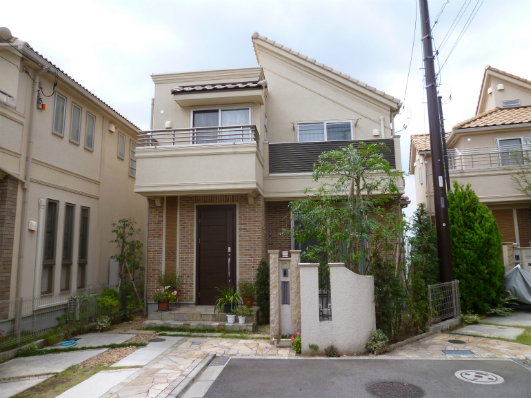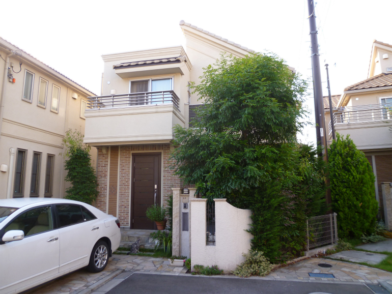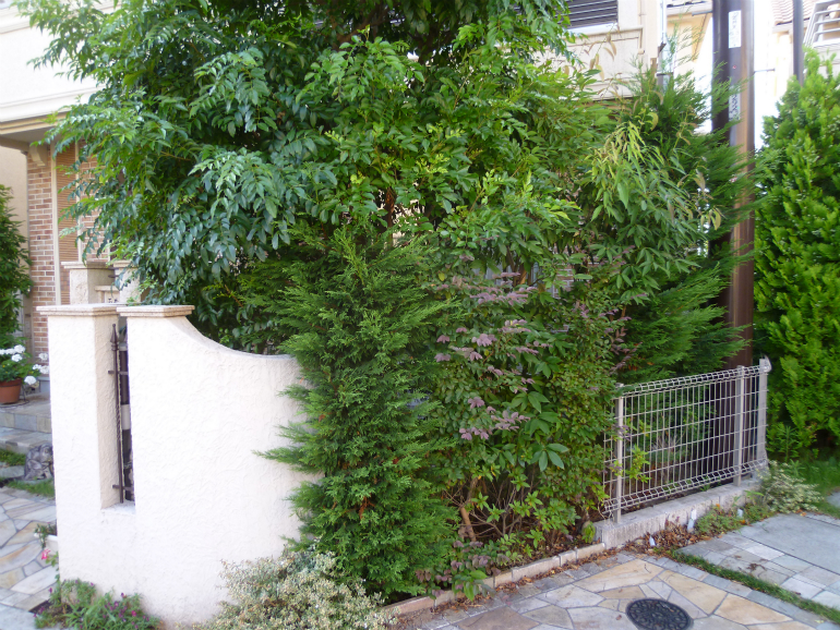 比較的新しい住宅街で、正面に見えるシマトネリコがかなり大きくなっており、こちらを含め、全体をお手入れさせて頂きました。