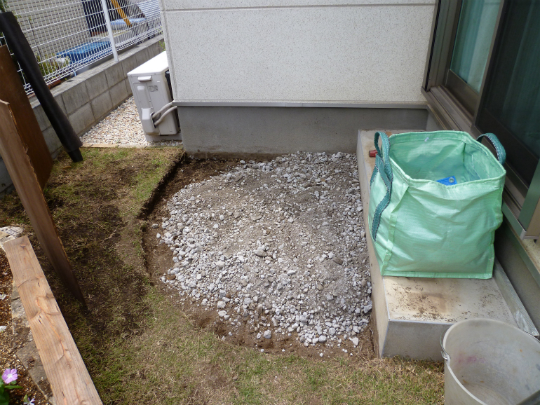 所が、その芝生の中に生える雑草取りが、大変との事で、今回、思い切って、お庭のリフォームを行う事になりました。