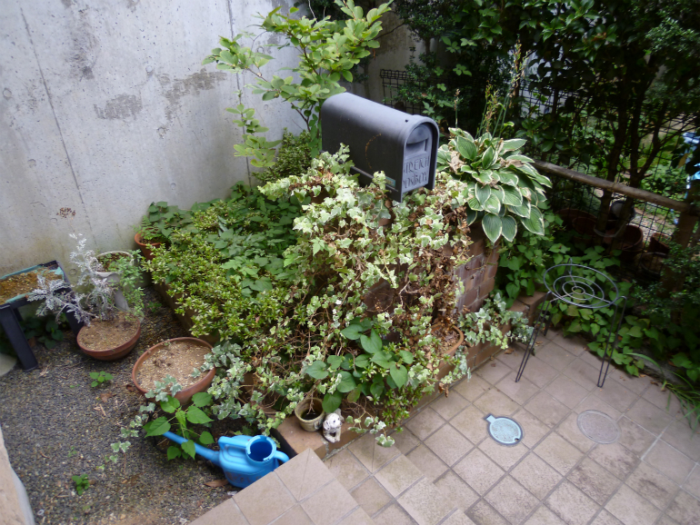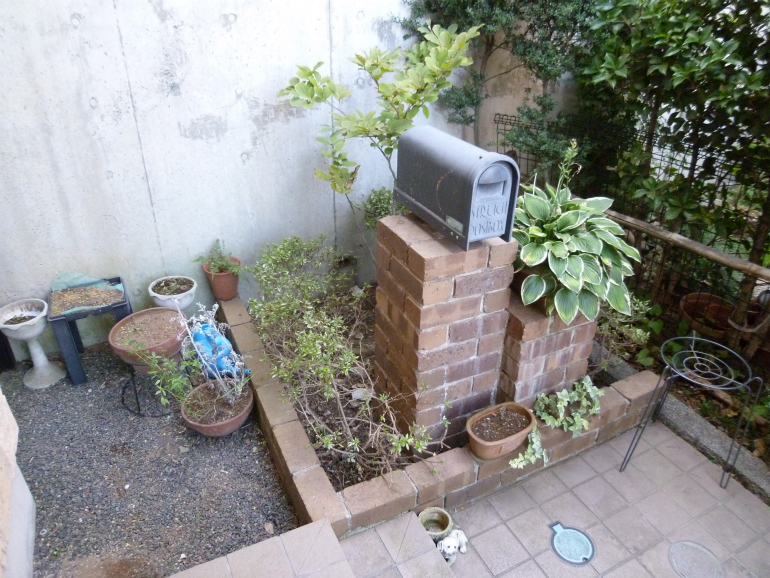 自分で切りすぎたせいか、一部枯れてしまったというご相談を受けましたので、お手入れと新しくツゲを植える事で対応させて頂く事になりました。
