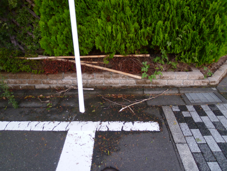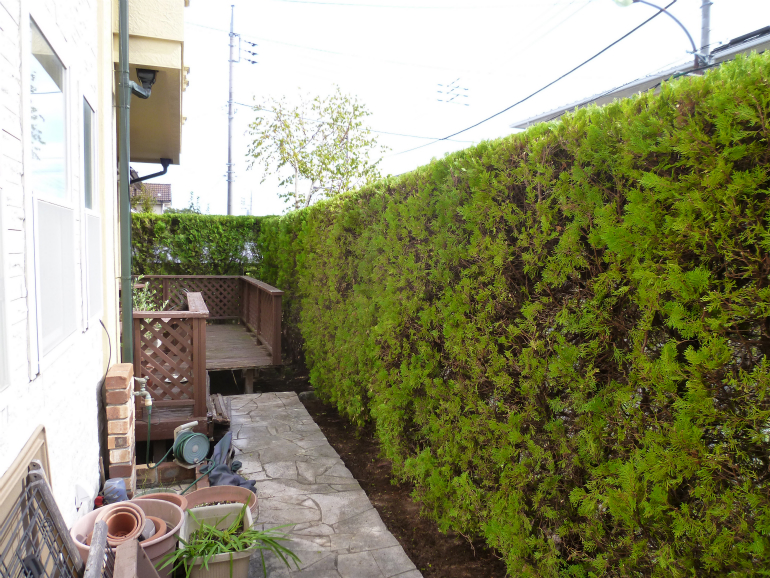 お家をぐるりと囲んでいるコニファー“コノテガシワ”の生垣が、かなり太ってきており、歩道にはみ出してきておりました。