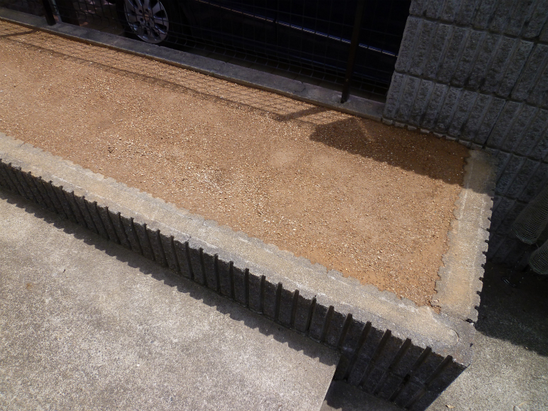 毎年、草取りを承っているコチラのお客様、今回は、駐車場部分の草やご自宅周りの草が気になる場所を透塊ソイルという固まる土を使って、雑草を生えてこないようにしました。