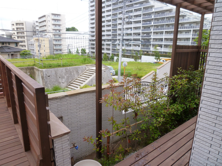今回は、マンションからの目線を遮る為の植木を植えつけました。