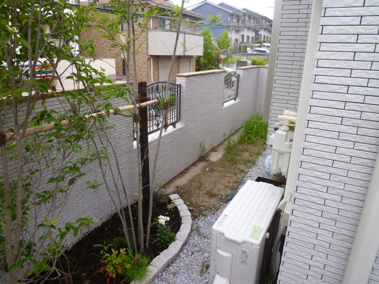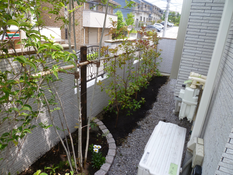 もともと植えてあったレッドロビンも、庭内に移動し、作業完了です。