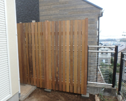 【 施工内容 】 目隠し用イタウバ製ウッドフェンス設置工事