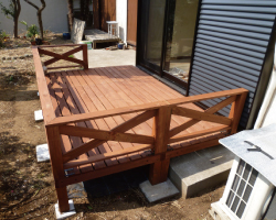 1、職人さん作業費 2、ウッドデッキ用木材 セランガンバツ、土台ヒノキ