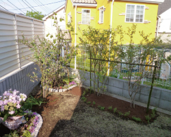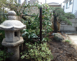 【 施工内容 】 土の入れ替え 植木の移植 支柱掛け