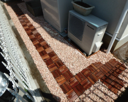 【 施工内容 】 ウッドパネル設置、砂利敷き