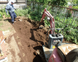 【 施工内容 】 土の入れ替え、レンガ敷設工事